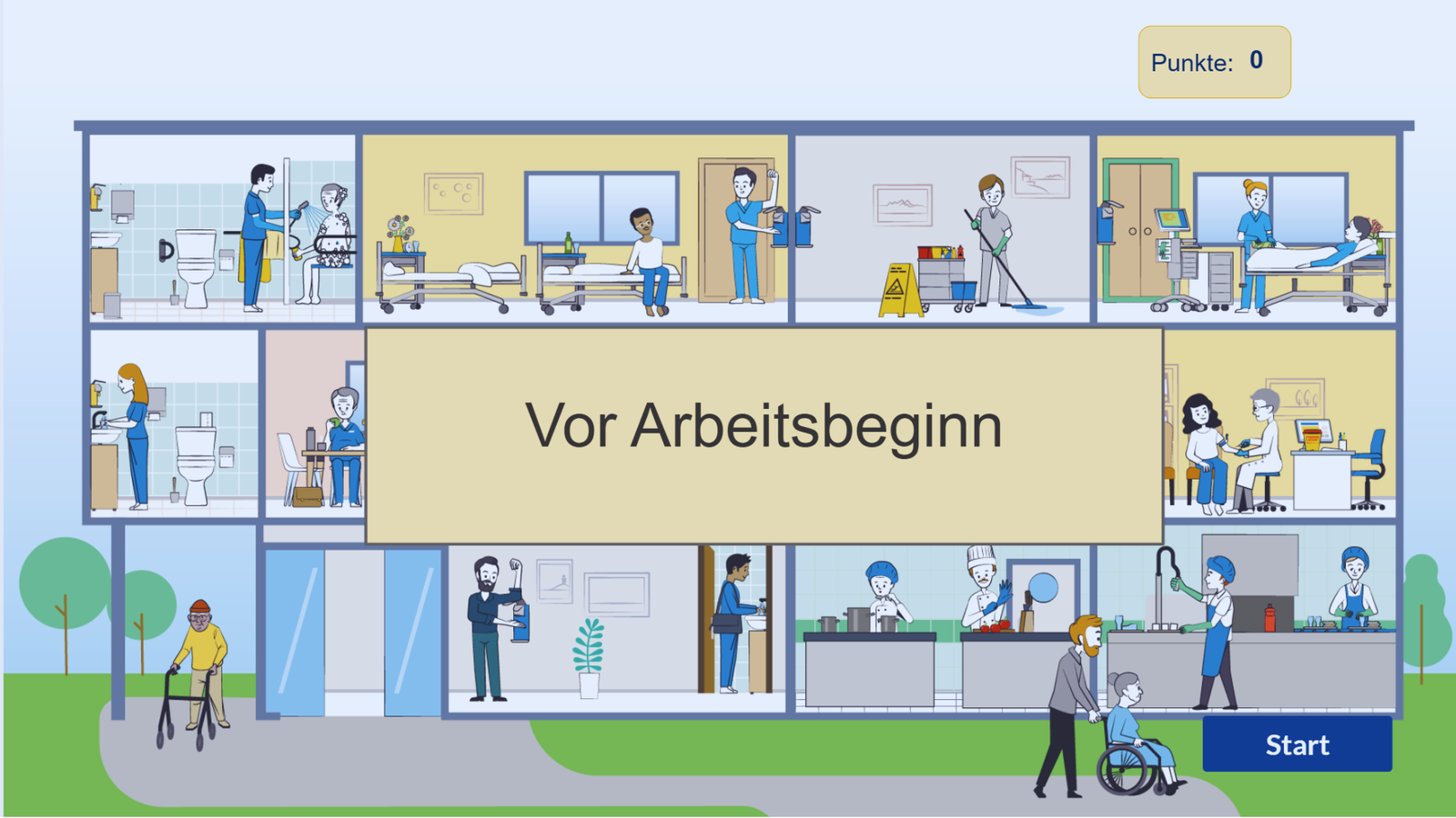 This gamified module reinforces essential practices in skin protection and hand hygiene using points, timers, and immediate feedback. Designed to support behavioral change, the experience integrates short challenges that mirror real workplace situations. The playful approach boosts motivation while ensuring that critical safety content remains clearly presented.